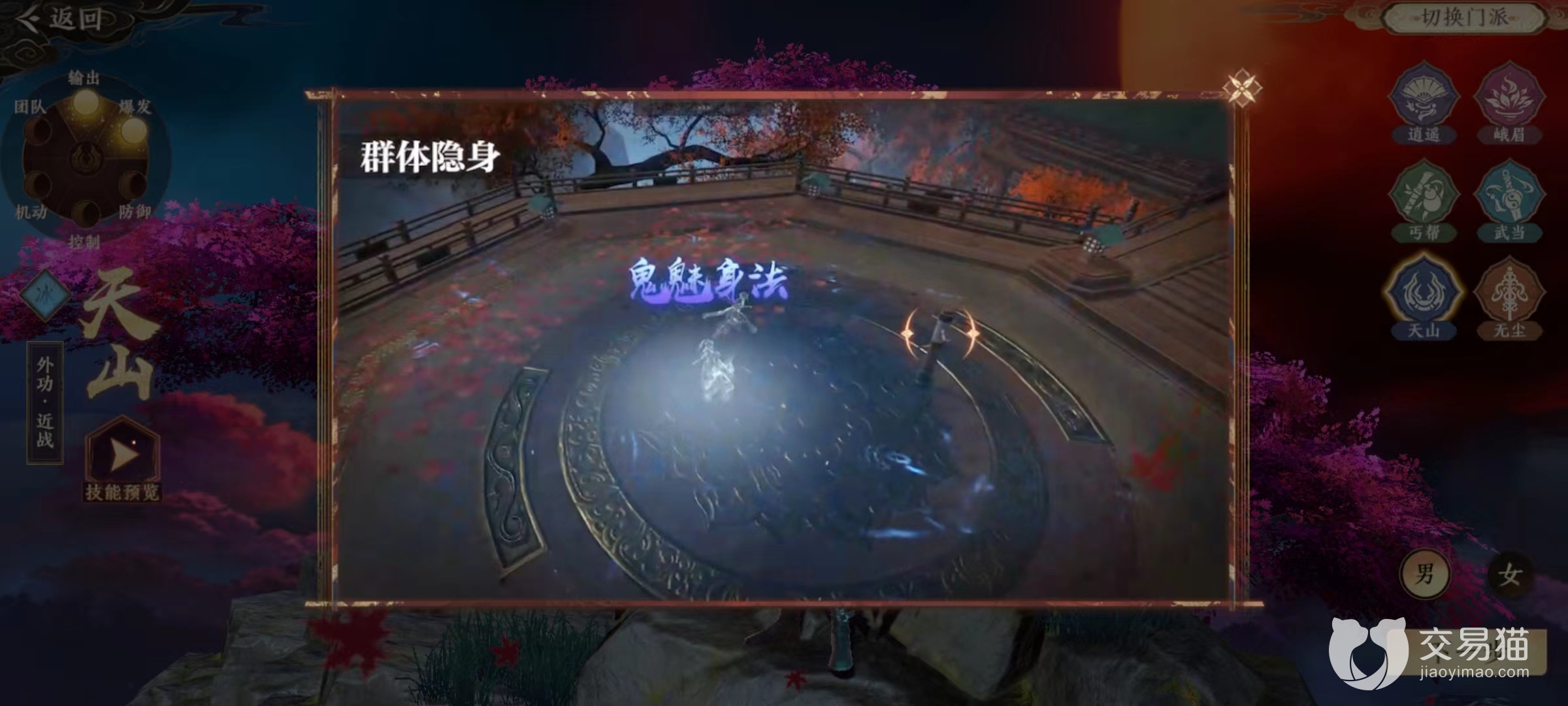 除此之外,还有另外两个隐身技能,分别是影遁无形和鬼魅身法,其中隐遁无形使得自身进入隐身状态,最长能达到60秒钟,有充分时间进行走位和调整状态以及等待技能CD。鬼魅身法属于群体隐身,在三对三PK或是帮派战斗中有奇效。在绝大多数单挑对战中,天山都会先用隐身来起手,让对方感到重重压力状态,然后根据情况选择阳关三叠或是阳春白雪开始战斗。一旦对方想要开启爆发,还可以再次隐身,让敌人有力使不出。这些技能看似简单,但是要根据场上情况作出正确选择,需要多场战斗磨练,一定要先熟悉技能效果,然后应用于实战中。