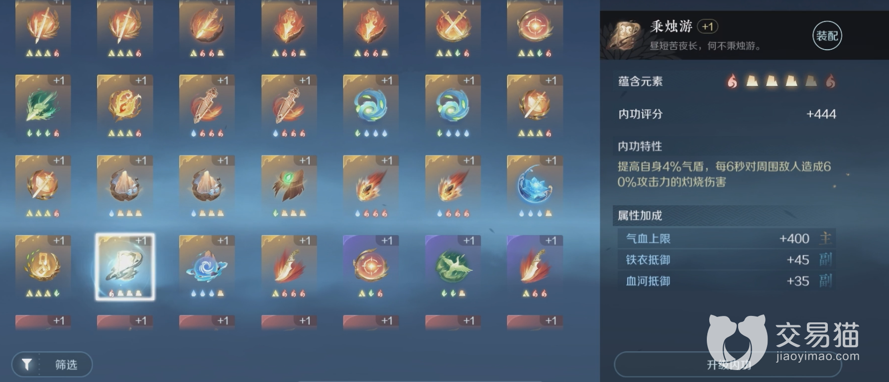 秉烛游:自身提高4%的气盾,且持续六秒钟对周围敌人造成60%的灼烧伤害。