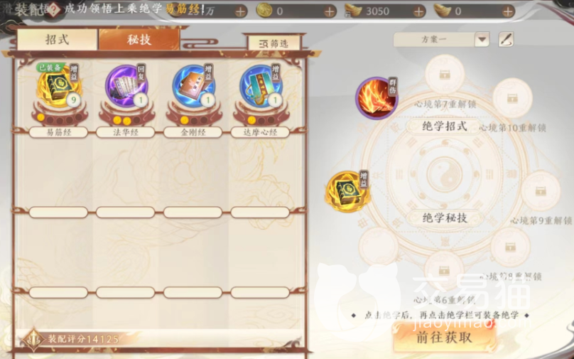 其实秘技的选择是可以在绝学里面选择的,分成的大类也只有两种,一个是被动的,一个是主动的,建议大家根据门派特性来选择,不一样的秘技里面大家可以在上面搭配其他的技能,因为秘境是分成几个等级的,最好的其实就是旷世绝学,大家要是想在上面获取的话,只能通过藏经阁哦。