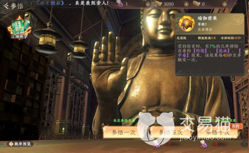 瑜伽密乘就是一个可以移除自己伤害的技能,如果本身受到了流血或者是中毒伤害的话,其实用这个技能将伤害转移出去是比较好的,最后一个神足经,这个技能是一个在PK对战中使用非常强的秘技,因为在跟敌人对战的时候其实可以达到免疫控制的效果。