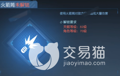 首先大家的天赋等级是需要达到62级的,然后在天赋等级足够之后大家就需要满足一下角色等级,角色等级需要达到70级以后大家才可以解锁火箭筒,解锁以后大家就可以召唤出来火箭筒啦,火箭筒的速度其实是比不上正常枪支的,但是它的火力主要还是在范围上。