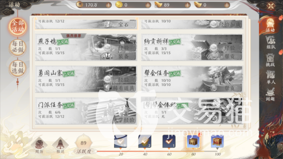 除了这个是战斗类型之外,这里还有基础副本任务也是需要对战的,不过这些都是需要组队进行的,每日只能参与一次,从中就会有很多的经验和道具物品,在对战的时候大家其实可以设定为自动战斗,这样就不需要自己去进行过多的操作了。完成这类任务之后,各位除了能够获取到经验以外,还可以获取到一些侠义值,所以也是推荐大家都去做一做的。