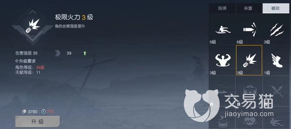 游戏中最重要的技能就是天赋型的,它与我们后面游戏的战斗有很大的联系,并且也是最直接体现出我们技能强度的,它包括三大类:投掷、装置和被动,投掷就是扔炸弹或者地雷等,去对敌人周围造成影响和伤害,对敌人的血量造成攻击,这也是最简单的一种,不像某种技能是单个的对某个点造成伤害,这从另一方面也可以让我们增加命中率,对群体造成伤害。