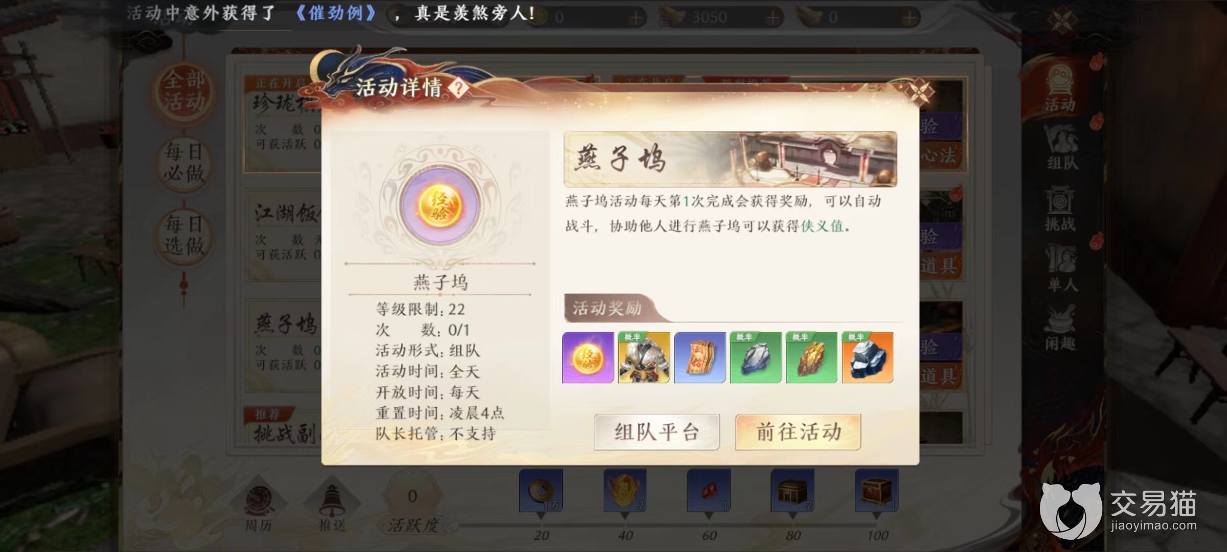 活动整体难度并不高,即使是最难打的挑战副本,只需要提前看下攻略,多和队员交沟通交流,失败几次也就能成功通关,其他日常活动则更是简单。大家熟悉的门派宵小、燕子坞、珍珑棋局等都以新形式呈现出来。而且需要时间大大缩短,如果能组上固定队伍,只需要一个小时左右就能将固定任务全部完成。