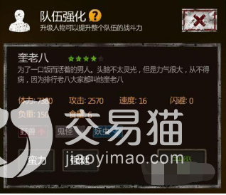只有第二次不给,才可以触发剧情,走完剧情就可以吧奎老八拉入队伍,这是最快的方式,要是大家不安这个顺序也可以拉他入队,不过中间的时间和步骤会拉长,奎老八这个角色的属性也是不错的,他的负重值是很高的,大家在过图的时候带奎老八来托东西是可以的。