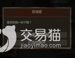 第一次问大家要的时候玩家要选择给奎老八干粮,给完之后他会短暂消失,为什么是短暂消失呢?因为大家往前推剧情过了一会儿之后,奎老八又会再次出现,这次他又会问大家要吃的,第二次的时候是不能给的,给的话之后奎老八会一直问大家要吃的。