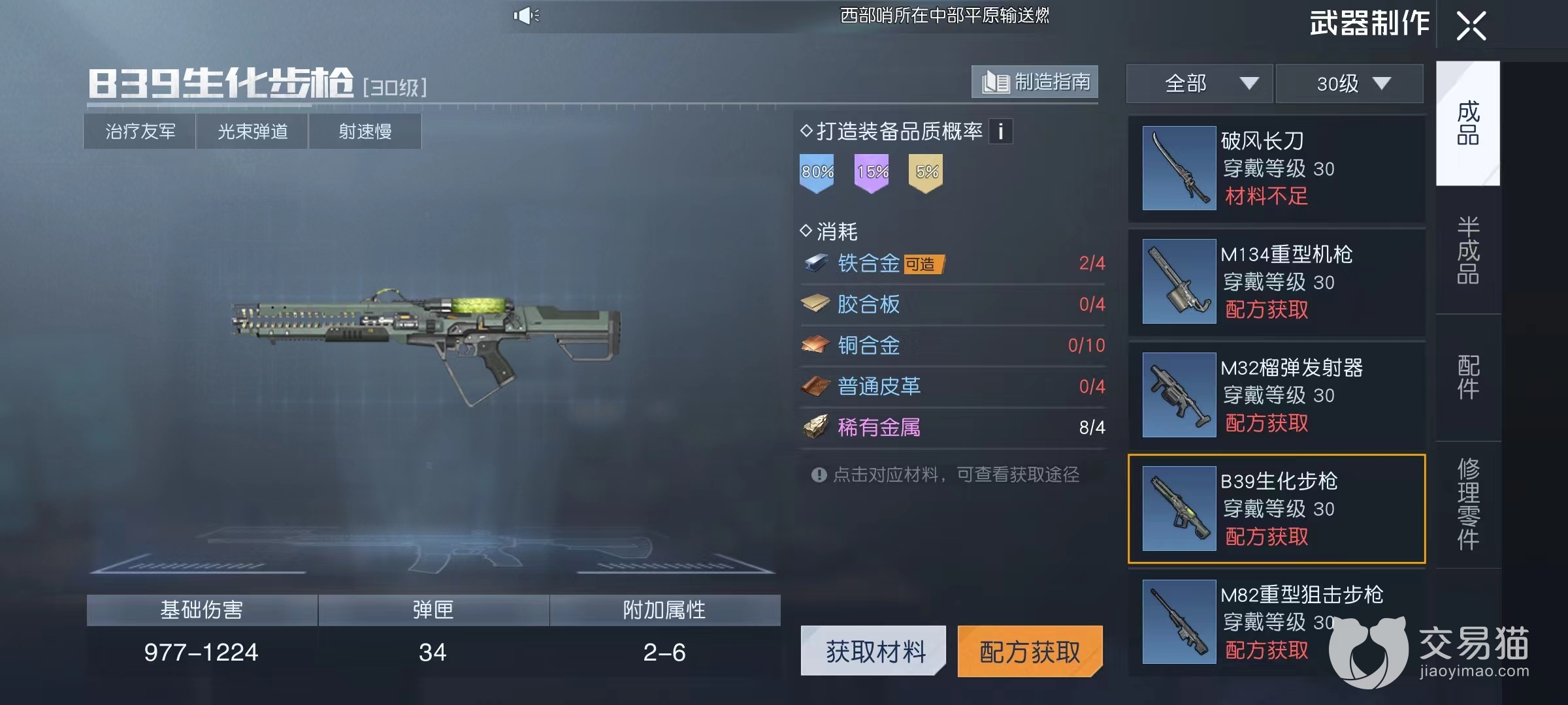 重武器在角色30级时可以解锁,与轻武器不同,重武器需要获取图纸后在可以制造。M134重型机枪特点是弹匣容量大,150发子弹打群怪随便突突。M32榴弹发射器特点是伤害高,1222-1531的基础伤害加上大范围持续性伤害,关键时刻火力压制非常强。B39生化步枪特点是能够治疗友军,在团队作战的适合辅助治疗。MB2重型狙击步枪可以切换穿甲弹和高爆弹,射程远精度高,远距离爆头打BOSS都是非常好用的。