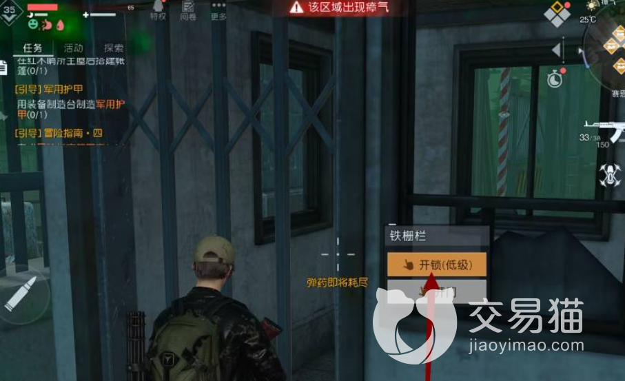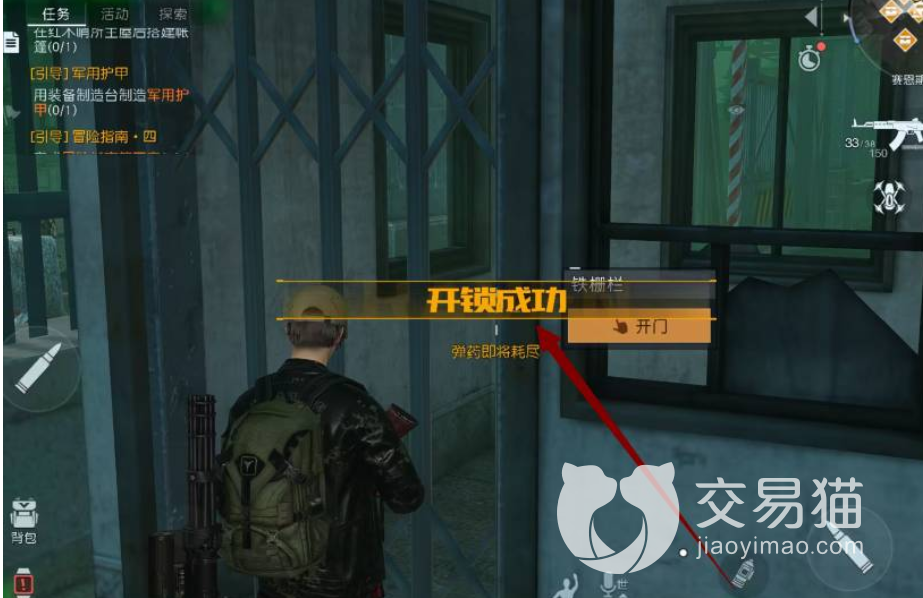 先简单的给玩家介绍一下游戏当中撬锁器的用法,首先我们在地图当中找到一个上了锁的大门,接着我们走到这个大门旁边会出现开锁的按钮,这个时候我们光点开锁是没办法打开这个门的。