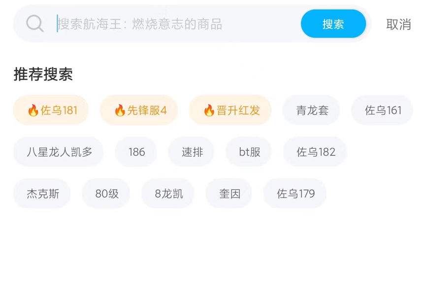 事前有准备的小伙伴肯定都在寻找账号出售价格和市场价相符合的账号,也会有自己想要的角色卡片,交易猫的航海王游戏专区内的搜索栏就可以帮助大家很好的解决查找账号的问题,只需要将想要的关键词输入交易猫就可以事先帮助大家筛选一遍再将账号精确展示给大家。