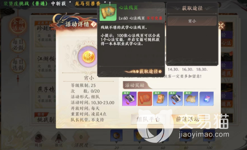 就比如如果是丐帮的秘籍被偷,那么参与活动的队伍其中的队长就必须是丐帮的角色,要是是其他的门派,队长就要是那个门派的玩家,队长开启活动之后,大家会随机传送到几个固定的地点,在其中大家要自己手动找到盗贼,没有指引,找到之后赶紧消灭盗贼,这个过程中有很多的小队都会传送到一起,大家要抓紧时间要不被别人找光了就完成不了任务啦。