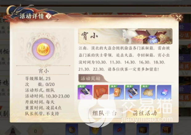 这个活动是一个需要组队才可以参与的活动,大家参与的时候也要注意一下时间,在早上十点半到晚上十一点之间可以随意参与,时间给的还是非常足够的,但是对于等级是有要求的,只有25级以上的玩家可以参与,所以要是等级不够大家就不要进入队伍了。