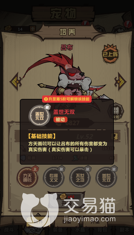 最后一个被动技能叫做“盖世无双”,它可以让吕布在使用主动技能的时候,伤害全部化为可以暴击的真实伤害,特别适合作为大爆发来使用。