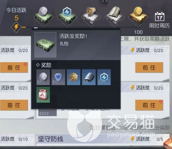 在所有的日常任务中还有一个叫做活跃度的玩法,大家若是来到该页面就可以看到底下有许多任务,大家要是将这些对应的任务完成之后,就能获取许多活跃度,等它们达到一定数值后,还能领取对应奖励礼包了,每天获取的活跃度越多的话,礼包里面的东西也会更好,而终极礼包里面还有机会获得大量金币哦。