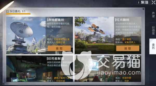 大家在聚落中能够看到这个委托玩法,在这里大家有四个选项,这四个地方每天都有新的任务会出现,各自的要求也都不一样,但是总体上来说,难度不高,若是帮助这几个地方完成任务的话,有机会获得大量的奖励,快速提高等级,还会有一定的概率获得较好的装备和武器哦,而且还能与这个地方的人们增加好感度,解锁更多玩法。