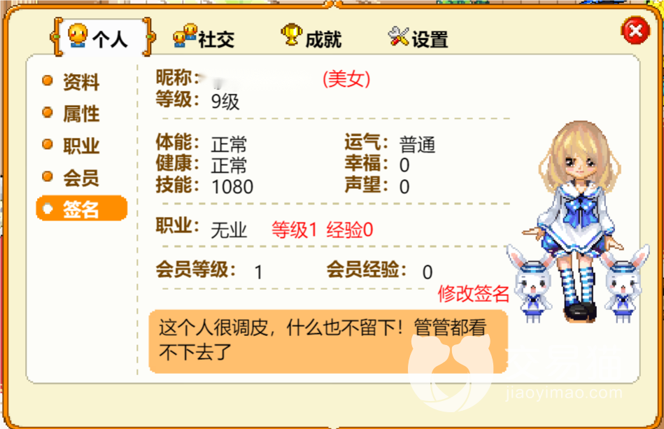 大家打开头像可以看到自己的等级,一注册游戏就会有自己的等级,开局应该是九级左右,并且会显示自己的各项属性指标,还有自己的穿着装扮,并且除了人物的等级还有职业技能的等级,两者差异较大。