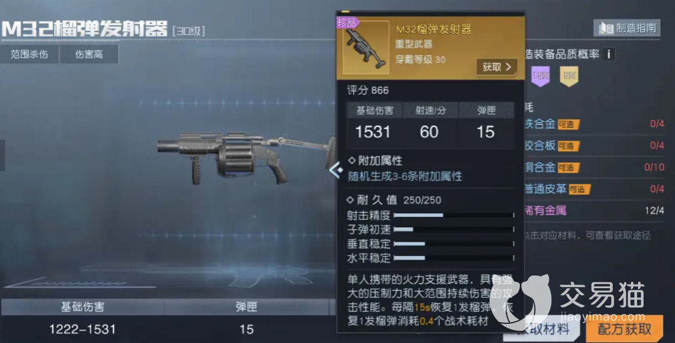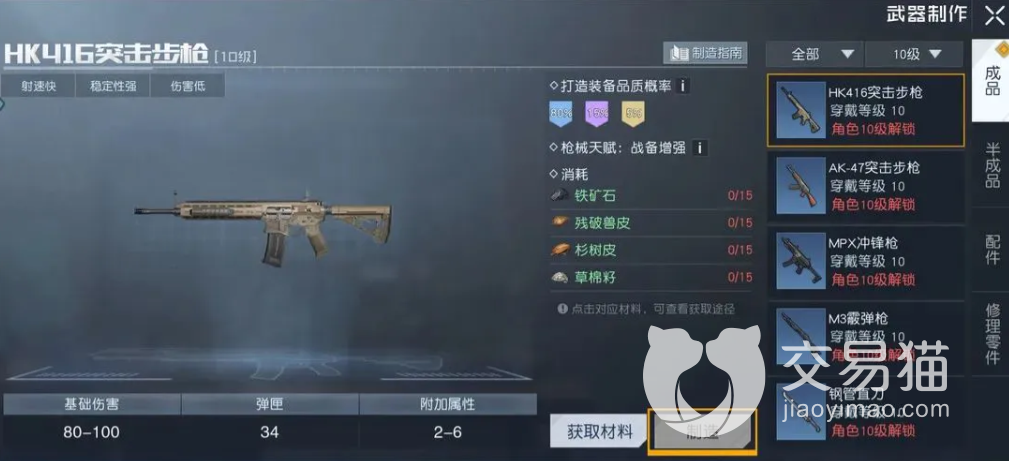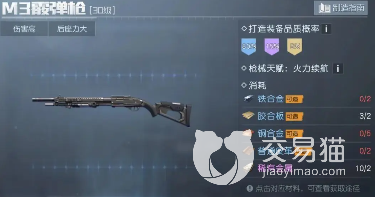 武器素材方面,整体的制造材料其实也较为的简单,只要两个胶合板,六个铜,三个皮革,加上两个稀有材料就可以了。基础伤害方面,116到145 配合上步枪的低中后坐力以及持续的火力伤害输出获取,难度简单且制作方便武器操作感也不错,加上改装特别好,算是一个较为水桶型的枪,什么特别大的优点,但也没有多少缺点。