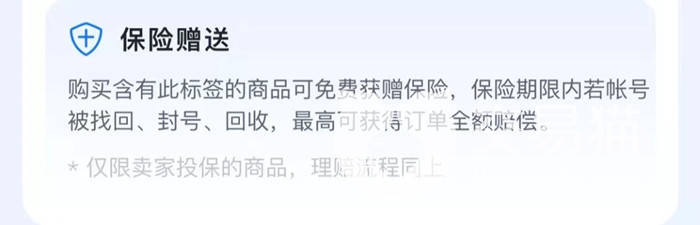 提出上述问题的玩家大概率是想要卖出账号换钱,那么单纯的模仿定价可能还不足以让自己的账号更加瞩目。这时候玩家们就需要一点点小小的策略,来让消费者觉得你的账号就是有保障,不选你的账号真是吃了大亏,这时候就可以通过平台“为订单买保险”的服务来增加竞争力。