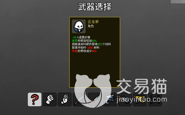 第二个推荐的角色是“企业家”,虽然它有两个红色词条,不过影响都不是很大,因为相比能力中所增加的巨额收获,材料以及商店的优惠,都是九牛一毛,只要发展到后面,它就可以凭借这些优势来获取更多更好的装备道具,在发展速度这块它说第二,恐怕也没人敢称第一了吧?