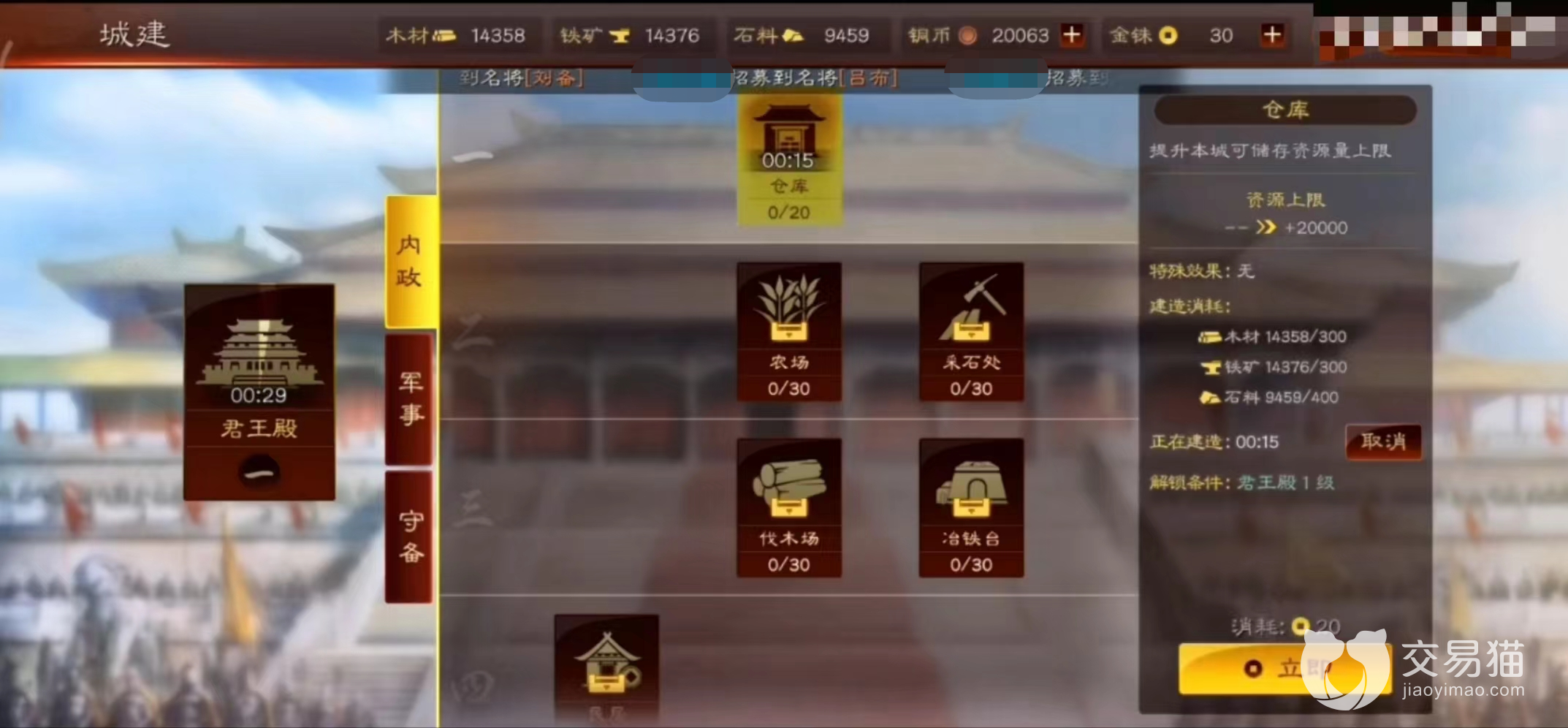 虽然玩家通过打仗也可以获得一定的粮食,但玩家总不能一直掠夺吧,其次可掠夺的粮食也不稳定。而且作为基础资源,粮食影响的就是玩家部队,可以在一定程度上和玩家的部队行成良性发展。