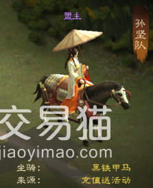 之后是黑铁甲马,这是游戏中唯一一只紫色坐骑,外形就是一匹大黑马披上了金甲,该坐骑目前也只能在充值活动中活得,只不过它的充值花销比起大象来看要少很多,这类坐骑经常会出现在大军师和督军坐骑栏中,普通玩家拥有的也不算太多。