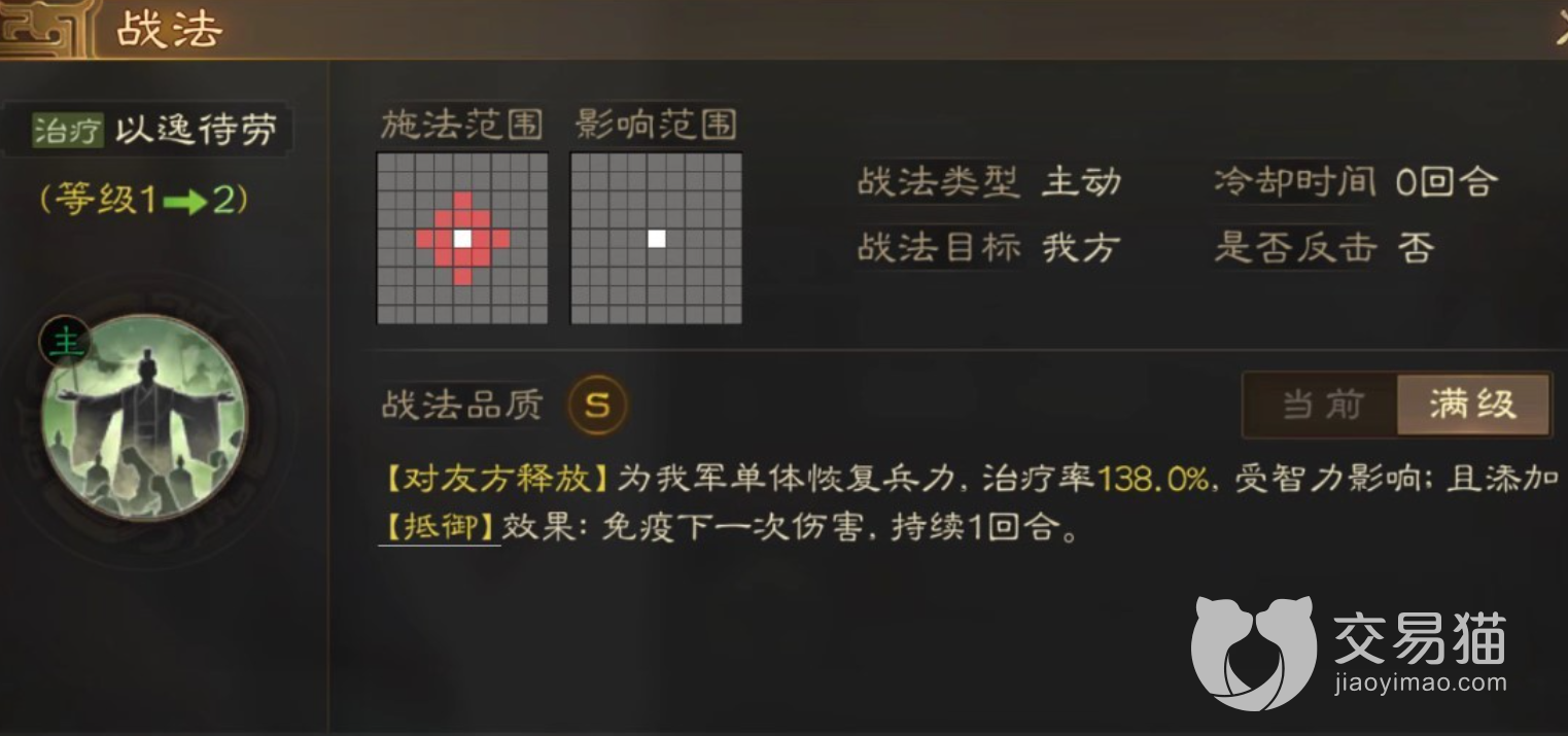 这一套也是针对兵力回复方面提供的加强,不过由于是A级战法,所以在回复的数值上肯定是不如S的,不过考虑到获取门槛低,所以性价比还算不错,其中坐守孤城是为范围内友军提供61%治疗率的兵力回复,每个友军都能兼顾到,效果还是非常好的。性行均淑的话稍微弱一些,只能提供28%的单体兵力回复,不过它可以精准命中友方兵力最低的目标,面对其他战法陷入CD的情况时,还是可以发挥不错作用的。