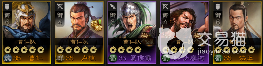 过渡阵容:曹仁+卢植+夏侯霸+沙摩柯+法正。
