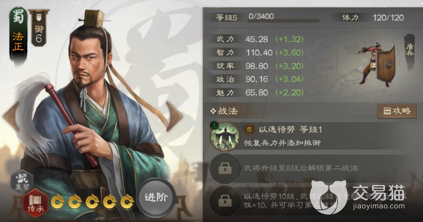 武将定位:法正虽然是辅助型的武将,但却同时拥有很高的智力和统率,加上本身兵种是盾兵,所以可以当做一个提供回血的前排使用,当然,他本身没有额外的免伤手段,加上战法所提供的单体回复和抵御都对其他友军有着很重要的保障,所以只能作为团队的第二前排,因此围绕这个思路,小编给各位推荐以下几套搭配方案。