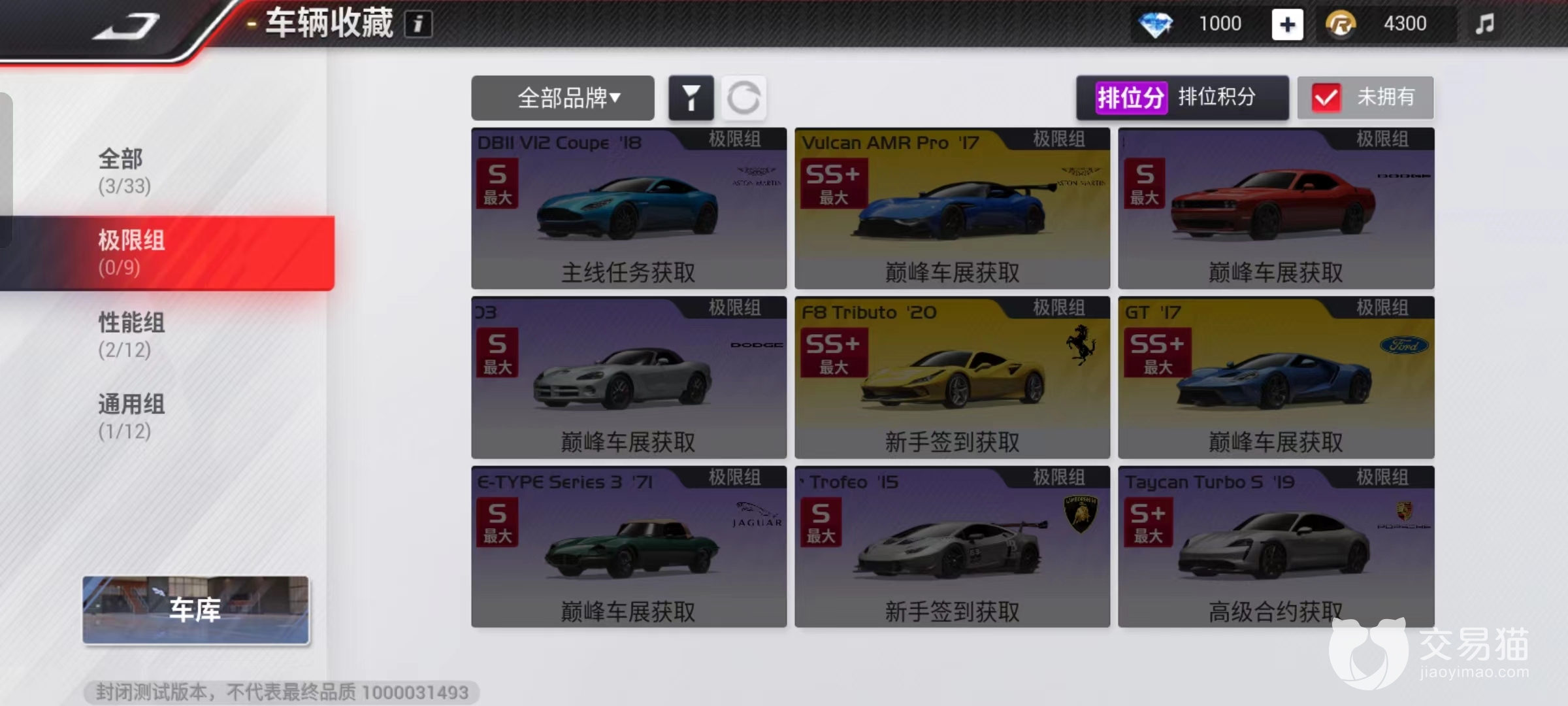 极限组共9辆汽车,属于是本作中首批高性能的赛车,同时获取也比较难。该组别中的Vulcan AMR Pro、FB Tributo和GT满级后都是SS+级的赛车,各项性能都非常高,同时没有任何短板。速度和稳定性兼具,无论是单一的赛道还是像白云山这样弯道多的赛道,都能祝玩家轻松拿下。