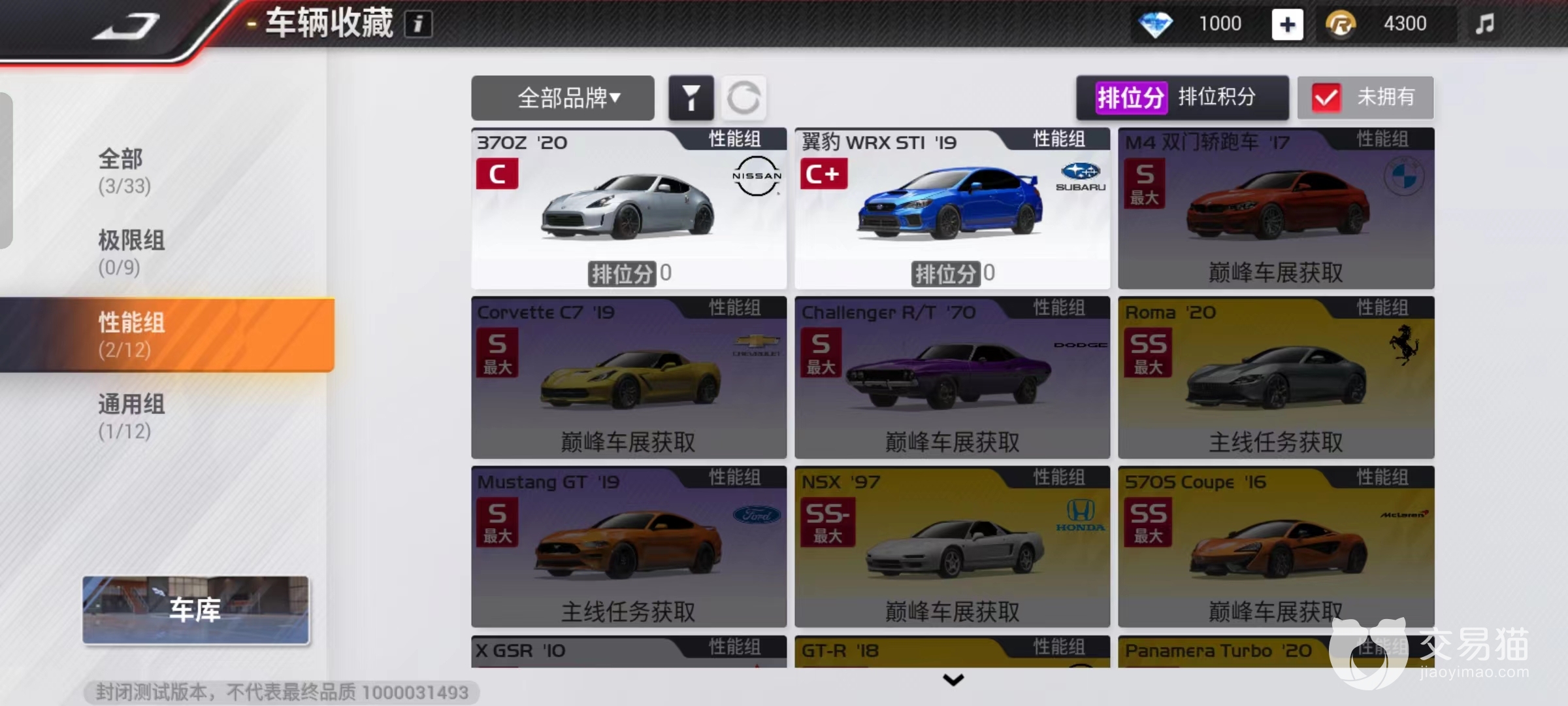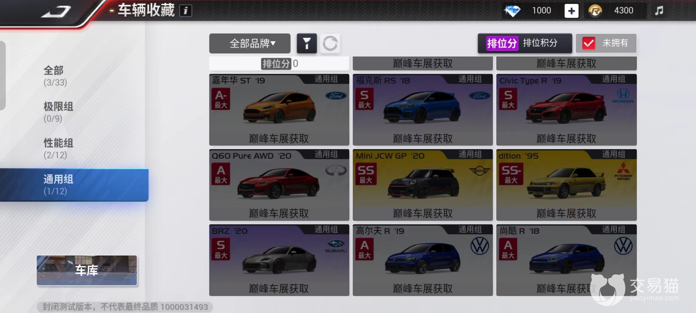 通用组车辆的性能就稍逊一筹了,其升满级后最高的也就是SS级的Z4 sDrive和MINI JCW。不过这两辆车的初始性能非常不错,直线加速能力较强,适合上手的同时在直线赛道居多的地图有着不俗的发挥。