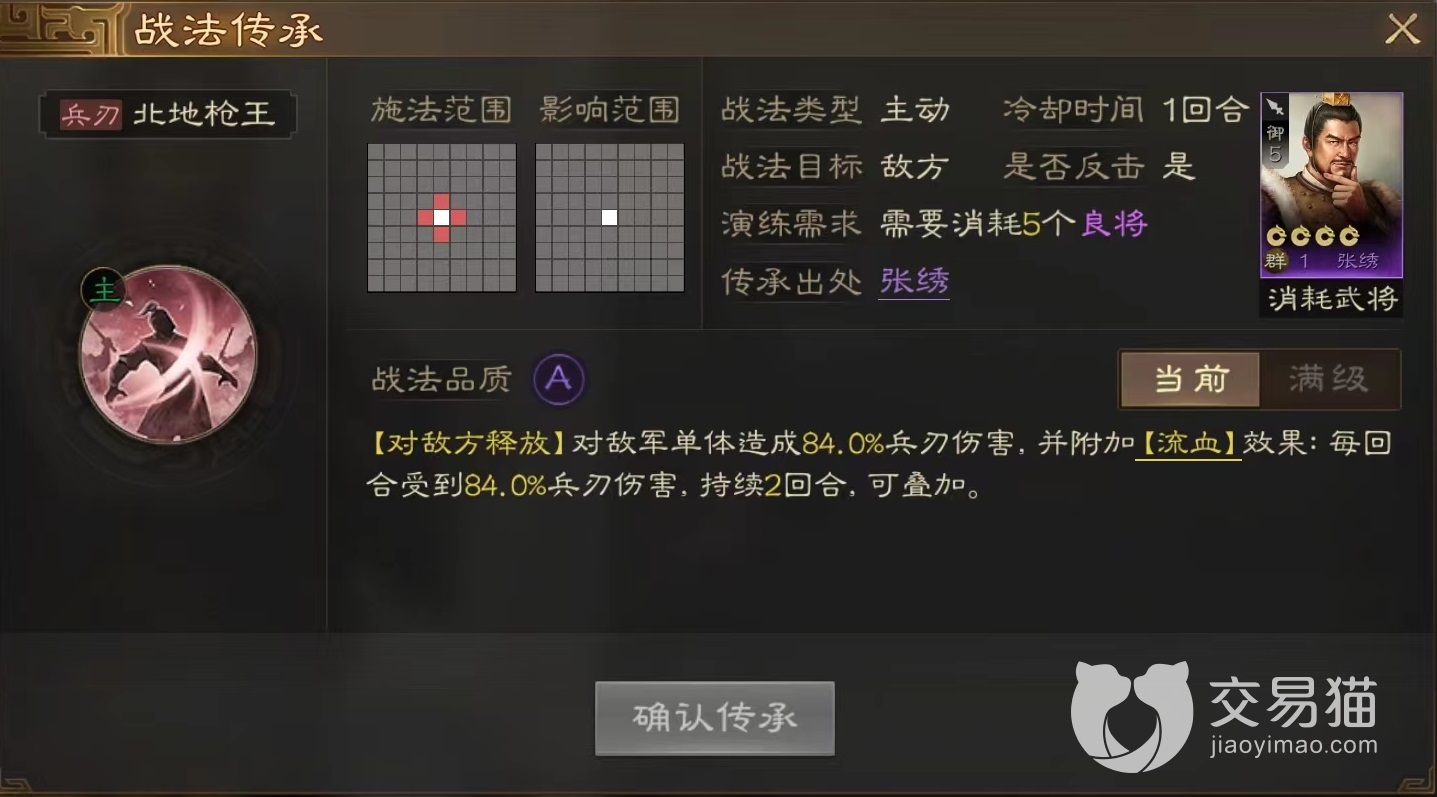 该战法虽然只是a级品质,但是效果非常出色,释放之后伤害敌方单体目标,造成中等偏上程度的兵刃伤害,同时能附加流血效果。被此效果影响之后,敌方在接下来的两个回合内会不断损失兵力,并且能够和其他同样造成流血技能效果叠加起来,非常适合走持续伤害的武将选择,而且流血伤害不会触发其他各种被动效果,也自然不会受到反击损伤。