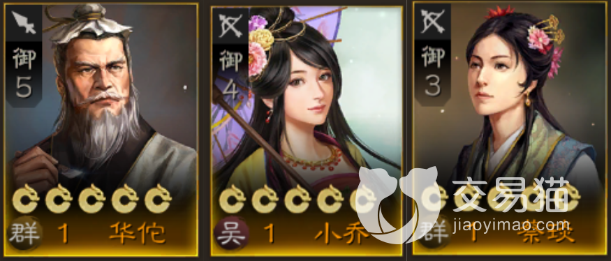 奶妈:华佗,小乔,蔡琰。奶妈武将其实功能区别都不大,主要还是看谁的回复数值高,以及谁的回复范围和频率更大,而这三个恰好都是其中的佼佼者,华佗主动被动都能回就不说了。小乔作为5御辅助,高额的智力提供了额外的回复强度。蔡琰更是同时兼具群体回复与免伤增益,而且只要3点御值,性价比直接拉满。
