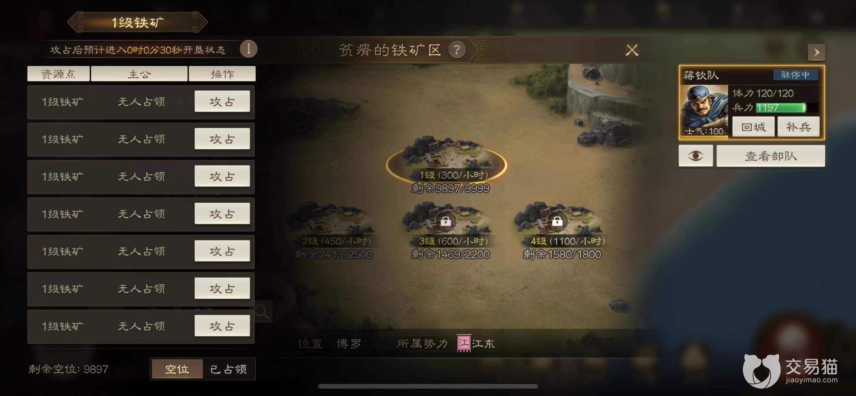 在打地的时候,自然要有强力的物理输出,才可瞬间歼灭倭寇。这里推荐用吕布的一骑当千,能够对目标物造成相当高的兵刃输出,并会对周围的敌人造成附加伤害,即便对方的倭寇很多,也可以迅速地铲除,让你及时地占领地图上的各种资源。
