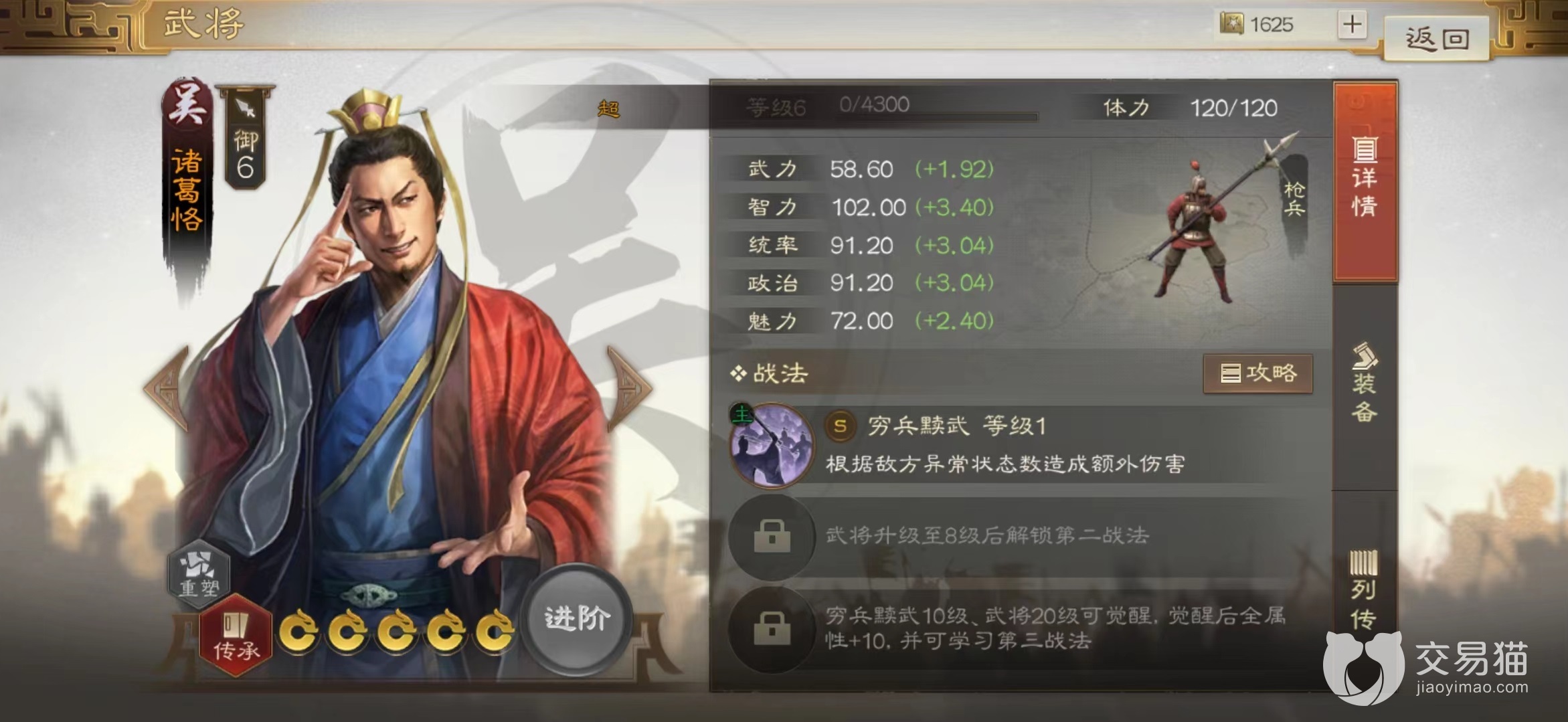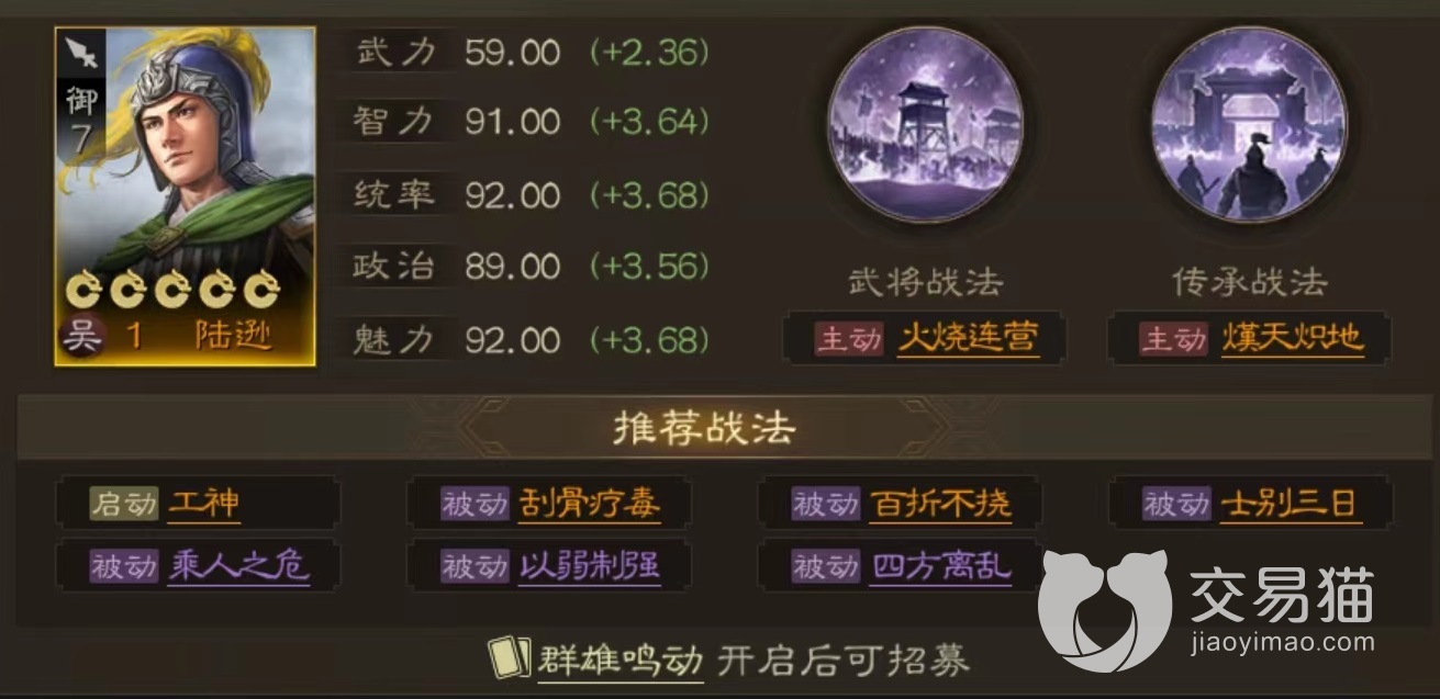 在适用范围上就很广泛,新出现的武将诸葛恪就非常适合,诸葛恪特点是需要根据对方身上异常状态数量来提高伤害,这样就能腾出前三回合时间来使对方身上状态叠加到非常高程度,这样等到智力提升上来之后,就可以持续不断输出。同样适合的还有陆逊,作为东吴阵营强势角色,陆逊战法火烧连营不仅伤害高,而且还能将灼烧状态传递出去,也需要大量智力加成。