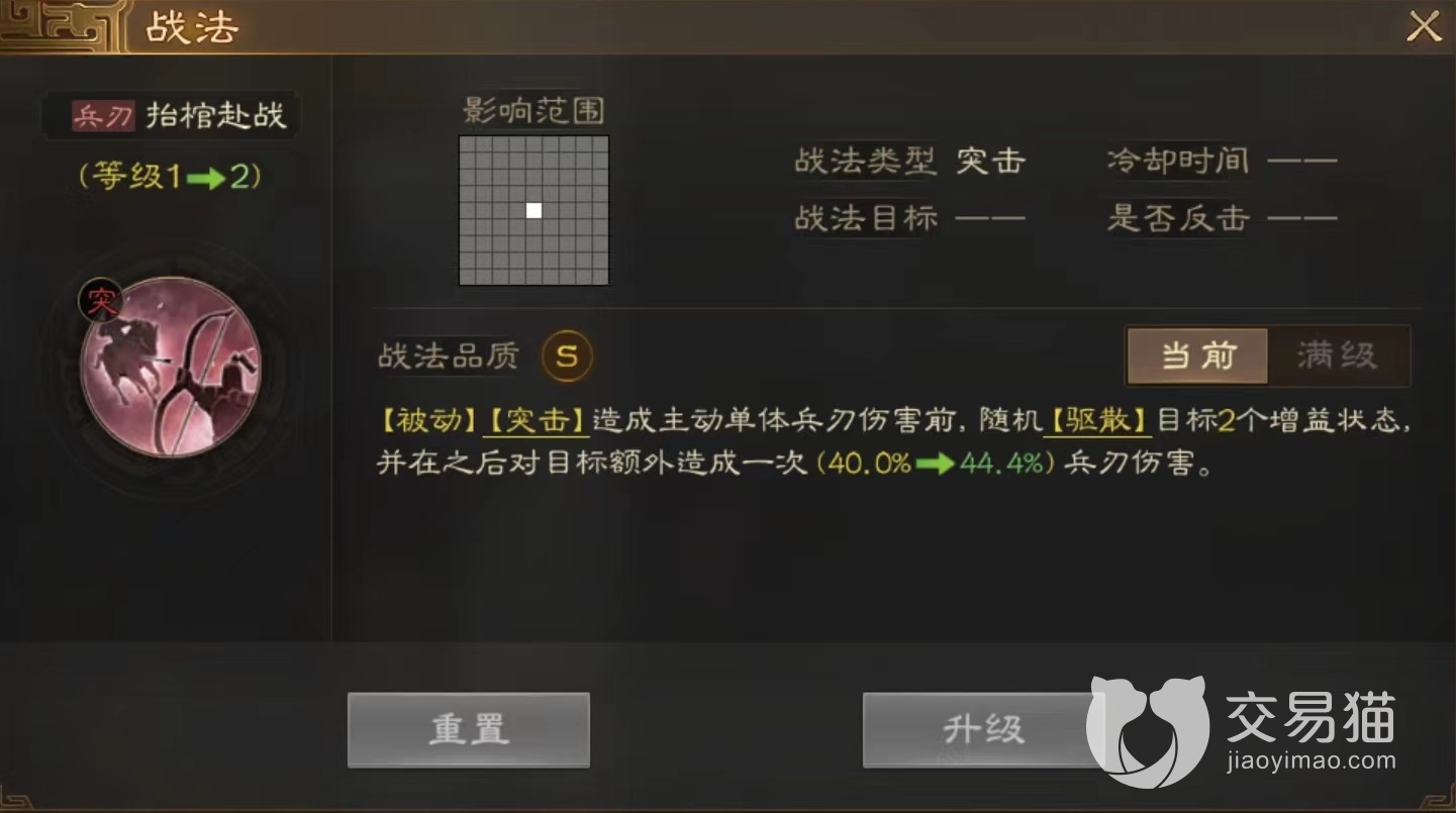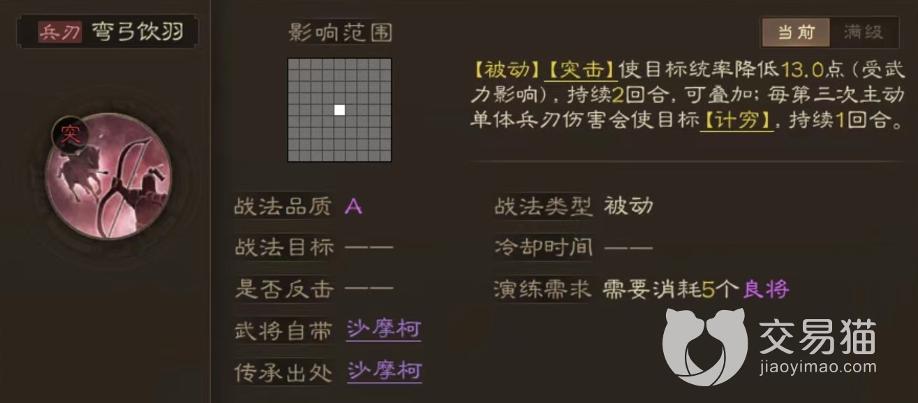 在搭配之前需要先了解释放状态要求,虽然是被动但并不是所有情况都能触发,需要有突击效果之后才能发挥作用,触发之后使目标统率降低,具体数值要根据武将自身武力值计算。触发之后两个回合内生效,还能够叠加起来,对防御削弱十分明显。还有个效果是每次携带武将第3次发动主动伤害技能时候,还会额外附加技穷状态。