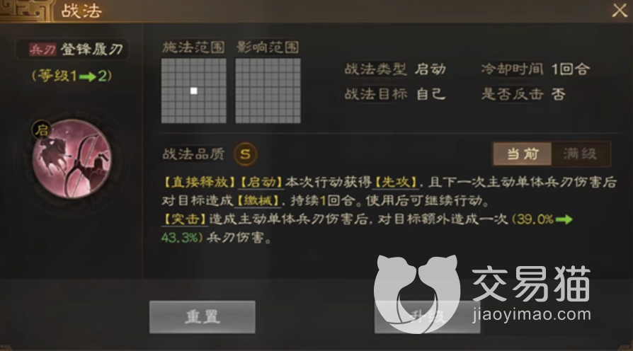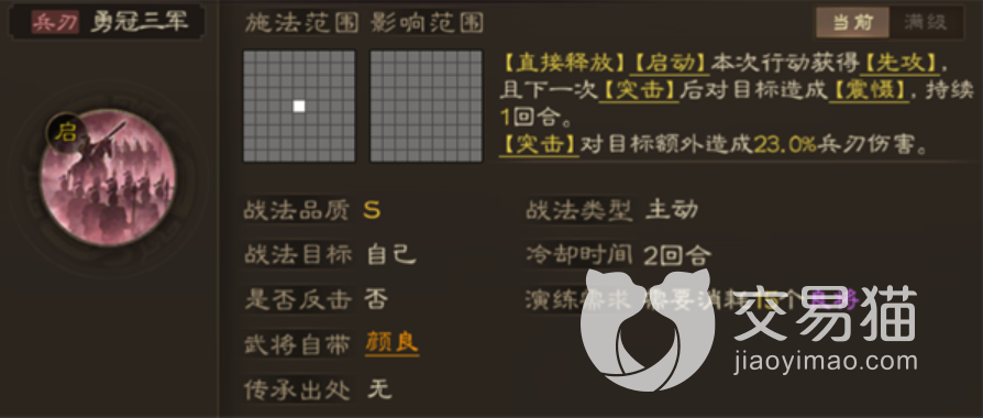 登峰履刃是一个能够发出先手攻击的战法,攻击之后下一次行动的时候还可以让敌人缴械,其实勇冠三军这个战法就跟登峰履刃有点类似,这个战法是可以带来震慑,跟它上面的缴械造成但是效果差不多,不过前者是对武器造成控制,后者是对武将造成控制。