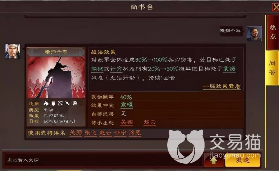 再来说一下关于这套阵容里面所存在的优势,首先,关羽不用说他的战法一夫当关简直是强大的厉害,可以用这个技能让敌方的血线压低,然后就是张飞,他会在战斗的时候提供一个保护作用,他的坦度和嘲讽也是用的很好,可以将我方团队的生存能力提高,最后再讲一下刘备,他的回血治疗功能也是对我方团队有一个很大的作用,因为在战斗的时候会为我方人物提供一些续航能力,这样一来这三个人物可以形成一个强有力的羁绊作用,可以说,既能打又能扛,还能回复兵力,简直是蜀国阵容里面的万金油的存在。
