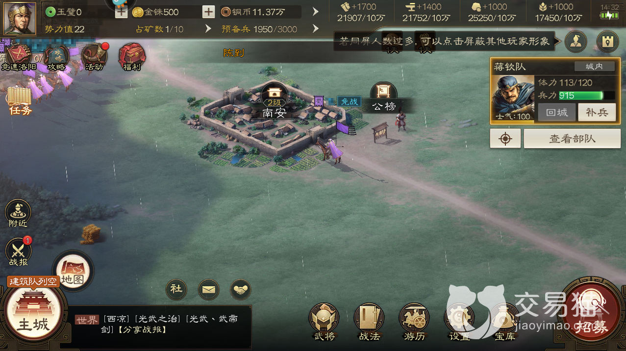 玩家刚接触一款新的游戏,那么在前期肯定会有一些主线任务来指导玩家这款游戏的基础玩法,玩家利用这些任务在前期也会快速的提升等级。当玩家通关前期的玩法以后就需要开始正式的开荒了,首先每个玩家的主城在落地以后是有48小时的保护期的。