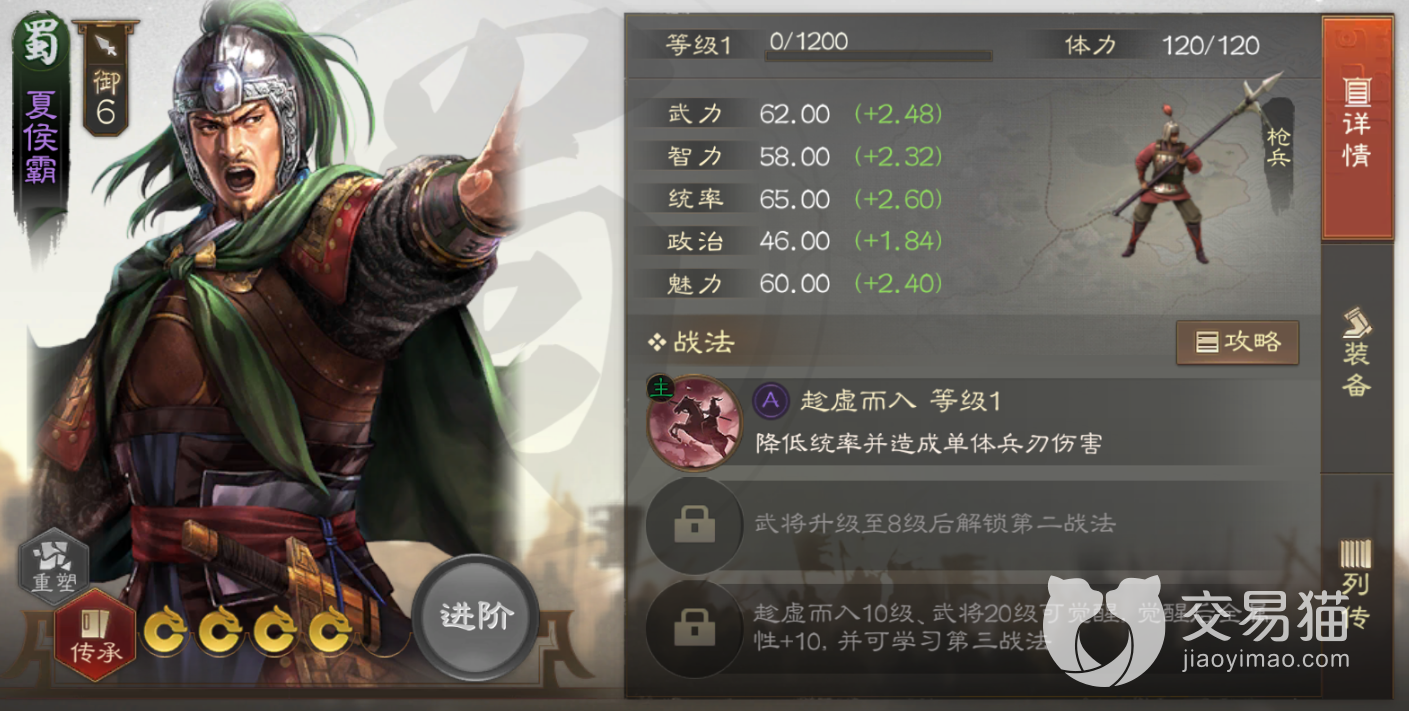 第一天:一个蜀国的武将夏侯霸、四星武将,战力相比从初级卡池里抽出来的武将要好。