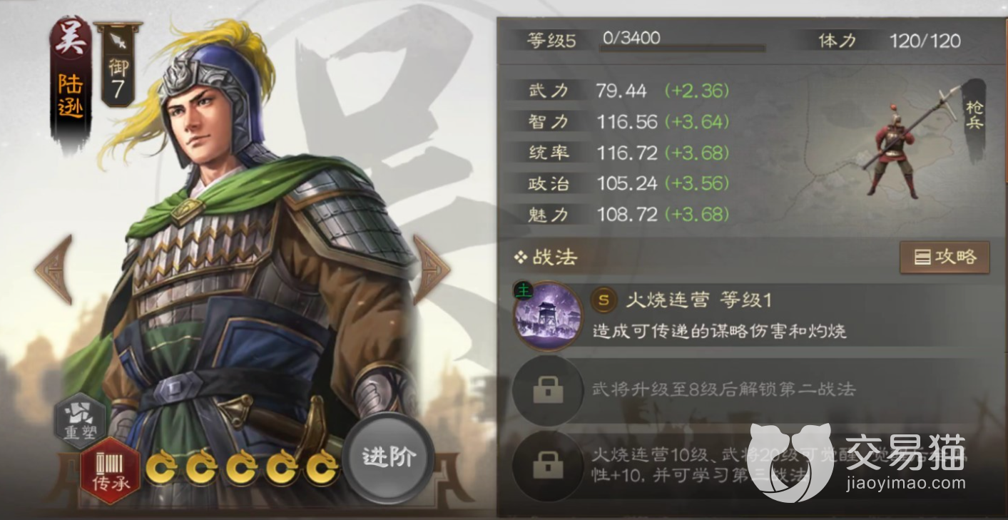 战法:赵云的战法是启动技,使用后不占用回合数,可以使其位移一段距离,并根据附近的敌军和友军数量来获得全属性提升,倒戈和无法被选中的多重效果,可以说集进攻,续航和生存能力为一体。陆逊是单体谋略伤害,但可以最多传递四次火球,也算是范围性的灼烧了。