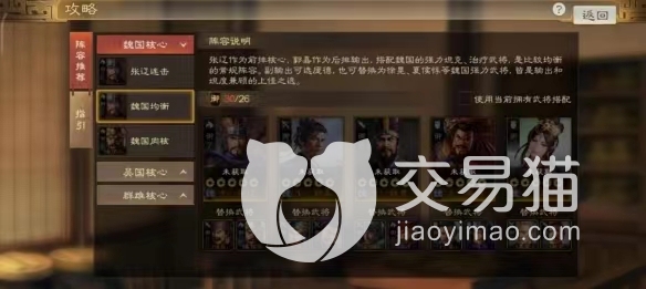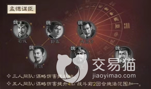 然后再做一下这个角色可以搭配的阵容,首先肯定是以魏国为主要的,前排的输出人选可以是典韦,他可以用他的坦度去吸引火力,至于其他的三个角色,可以在任意的武将中去选择,小编这边可以推荐一下,那就是甄姬以及郭嘉,这两个角色之中,一个是可以拥有回血的,这个技能还有一个是攻击的范围很广,这几个角色配合起来,可以让程昱在其中发挥出他应有的实力。
