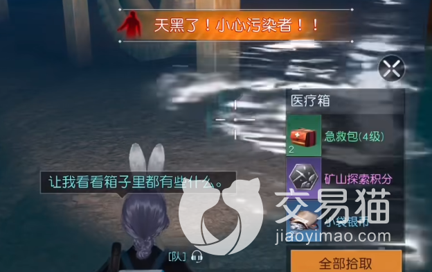 然后就是第二个宝箱,它就得走出屋子去找了。走出门口后,先找到火堆,朝着它走回看到一块大石头,然后沿着石头边走就会到达河边,然后就会发现这个箱子在河中间,非常明显,大概就是(3375,-342)这个坐标位置的附近,它的奖励和上一个是相同的,也是急救包和一些别的物品。