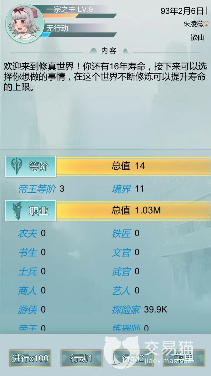 这款游戏里面一共是有20多种职业的,这20多种职业大概就有:农夫、帝王、武官、一宗之主等等。而且游戏里的每一种职业拥有的天赋都是不一样的,每个职业都拥有自己专属的天赋,而且他们每一种职业的天赋都会在开局的时候就随机生成,根本不需要我们担心怎么样去弄他的天赋,最最重要的是个别特殊的职业也会触发不同的事件哦,简直是有趣无比!