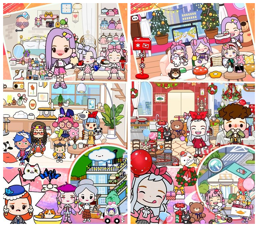 在这个游戏里面,玩家可以自定义创建角色,自由装扮化妆,在世界小屋中,还可以自定义摆放房间家具、装饰品摆设以及装修的风格。游戏里面有6个建筑物场所,包括公寓、美发沙龙、电影院与衣服店等,超过数十种造型、37种可染颜色可选,游玩的自由度很高。