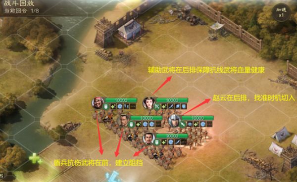 还可以直接使用高输出武将组成的队伍,让他们站在前方位置,然后辅助在后面对其进行治疗,还有收割的队伍也在后排,然后再用在前排的高输出骑兵,趁着敌人没有堵住桥之前快速来到敌人后排对其进行攻击,直接对敌人造成前后夹击的效果,让他们无法行动,然后再趁着高输出武将在敌方队伍中进行攻击的时候,再让收割骑兵跟着他的后面来到敌方位置进行收割,再搭配上辅助的治疗效果可以给队伍直接提供较强的援助作用,使用这套战术可以快速击败敌人,快速通过桥哦,总的来说就是队伍群选择高输出的,先让一部分的角色将敌人击退,再让后面的收割直接进去切掉敌人后排,就好打了。