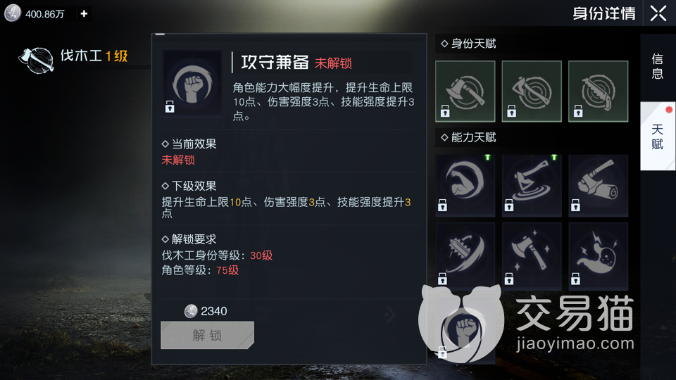 在能力天赋中他有个能力是攻守兼备玩法,这个是需要可以提升角色能力,生命值上限还有和伤害的,属于综合性的强度提升。但是想要解锁的条件会更难一些,其中职业本身的等级就需要达到三十级才可以,而各位角色的等级需要达到七十五级。