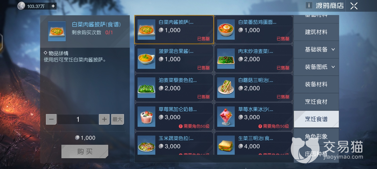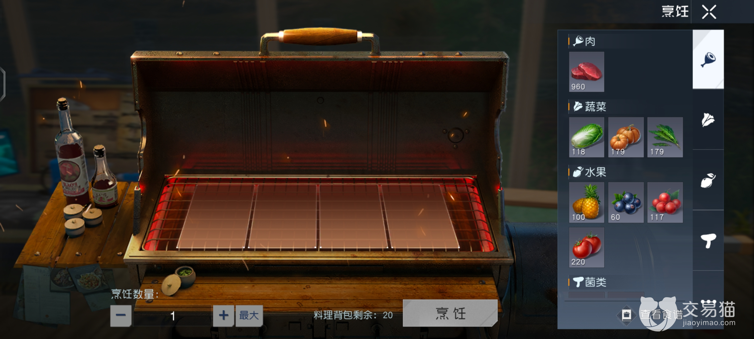 这里各位可以在采集的时候多收集一些肉在这里做烤肉,或者是通过钓鱼获取一些水产,这样材料的来源就不用担心了。通过这类方式基本每天抽出几分钟的时间就能够将熟练度刷满了。