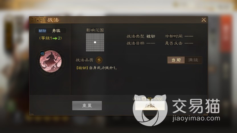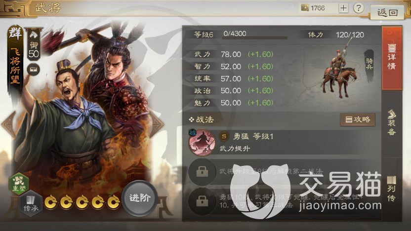 正如我们上面介绍的那样,这张卡主要用途就是留作纪念,因此属性技能方面完全不指望,初始(橙卡6级)属如“水桶”一般均衡,统率骑兵,卡面是吕布和陈宫的组合。自带被动战法“勇猛”,可以提升1点武力。你没看错,是1点,有点恶搞的意味在里面。