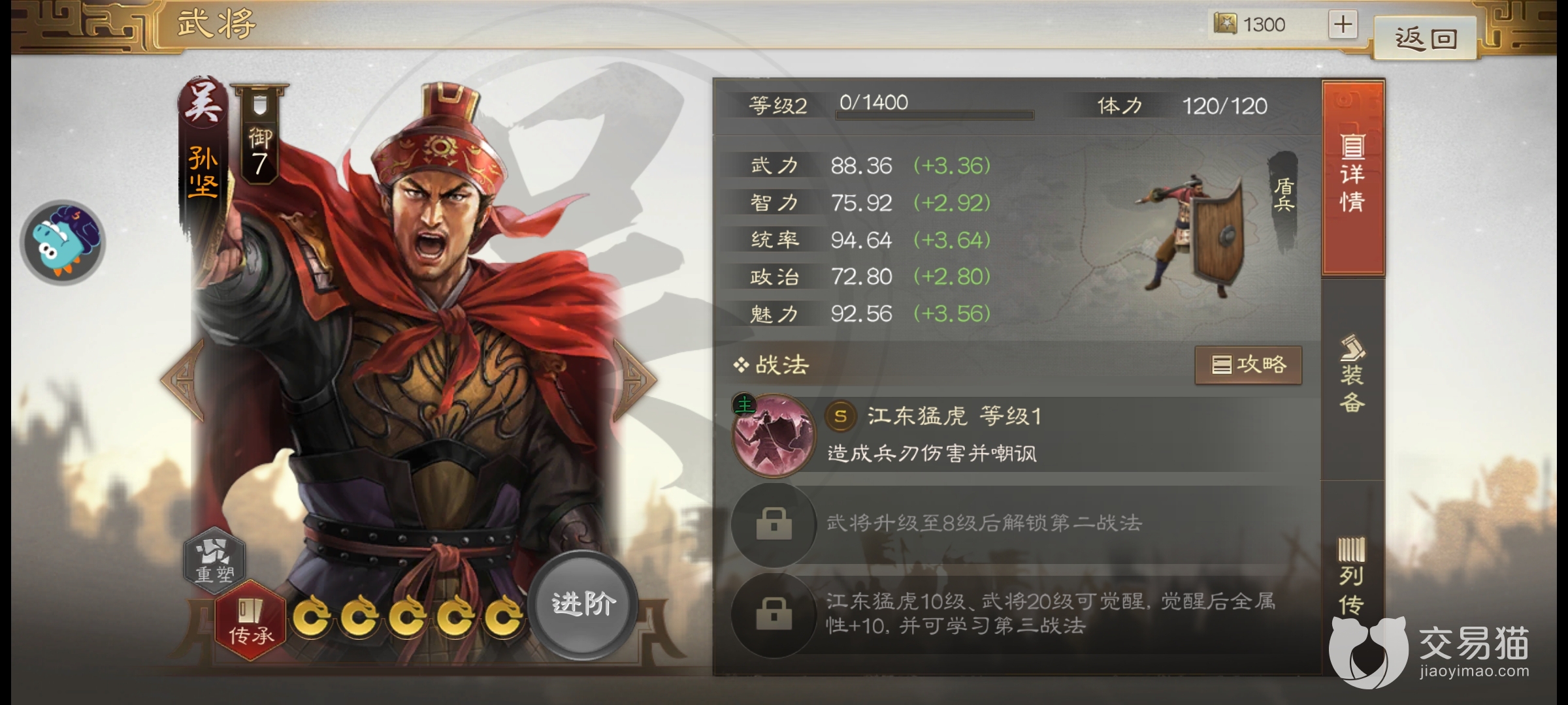 首先第一个江东军事集团的创始人,在游戏当中也是七级的强力角色,并且为了让玩家获取不困难还在活动当中赠送了,大家带一个培养然后完成任务进阶,可以让这个角色变得更加强大。