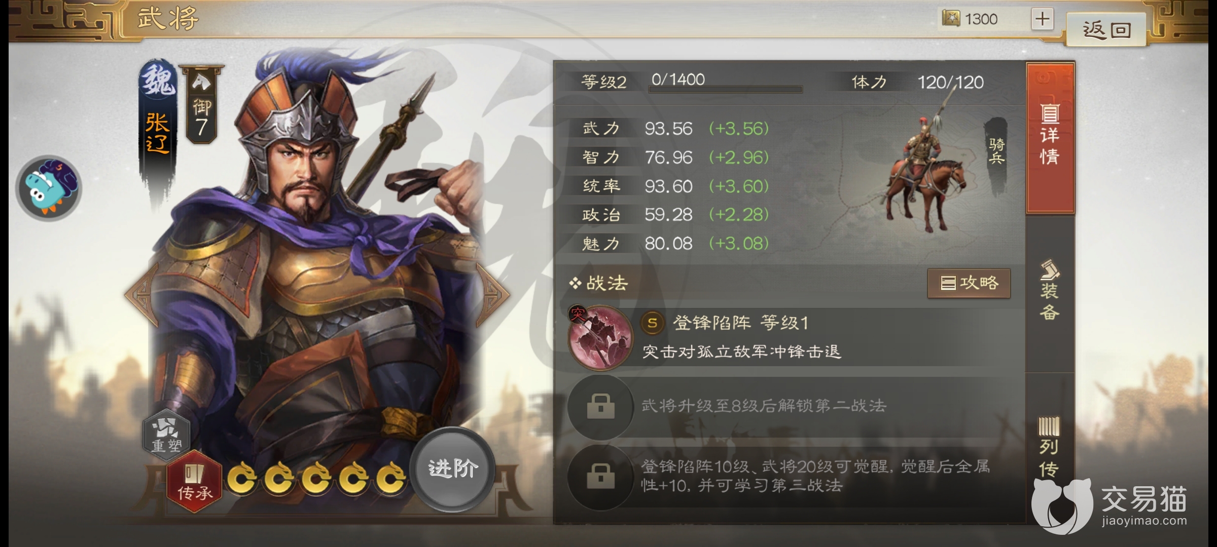 之后就是张辽了,该角色不用多说属于魏国第一的骑兵将领,多次低抵御吴国的入侵该角色属于非常超模的存在,大家主玩这个阵营的就选择他,保证能有不错的表现。