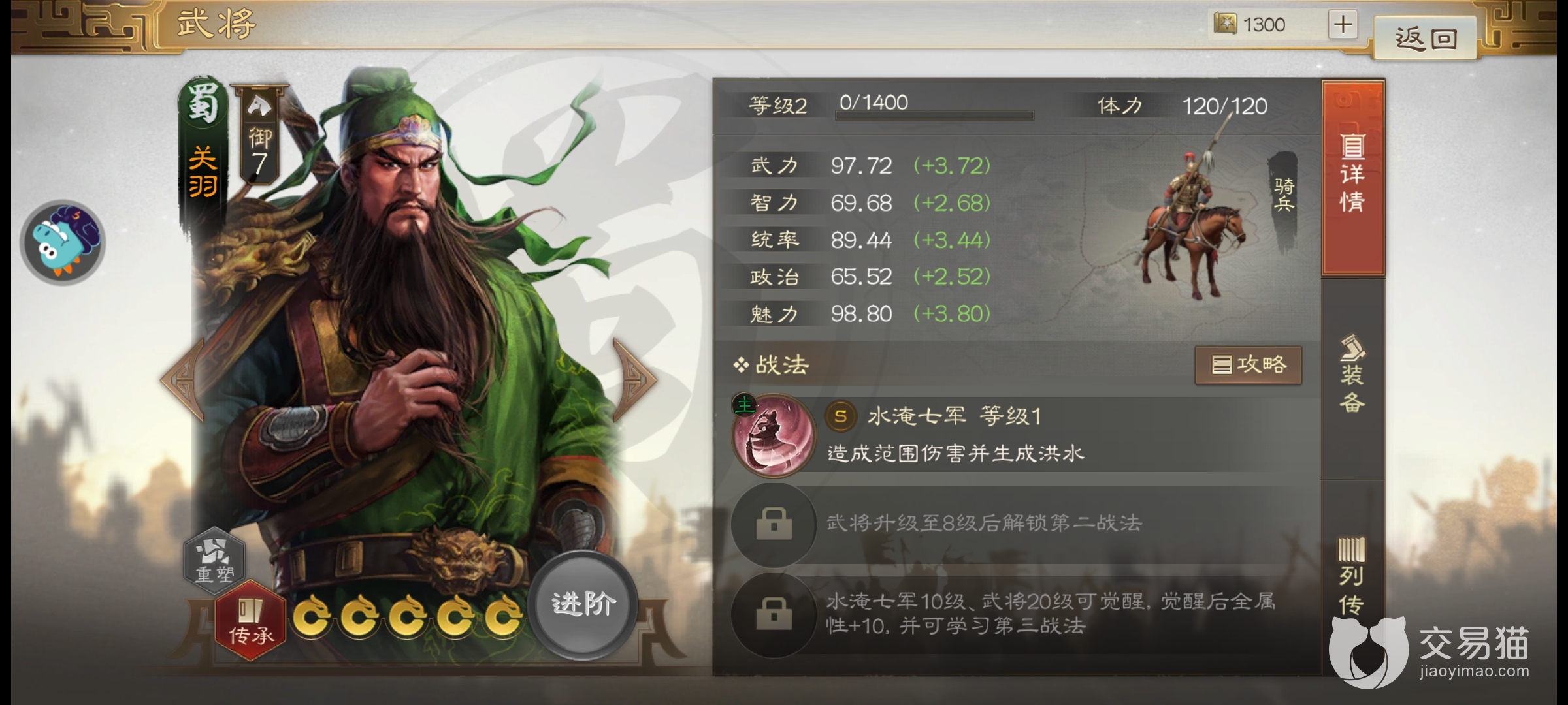 然后就是二爷,在演示当中最亮眼的就是二爷的群控技能了,作为威震华夏的角色强度也是在七这个数值,并且作为现在最牛的控制系列的角色,搭配灵活的同时还能有不错的输出,没有心仪的选择的话二爷永远是玩家最好的选择。